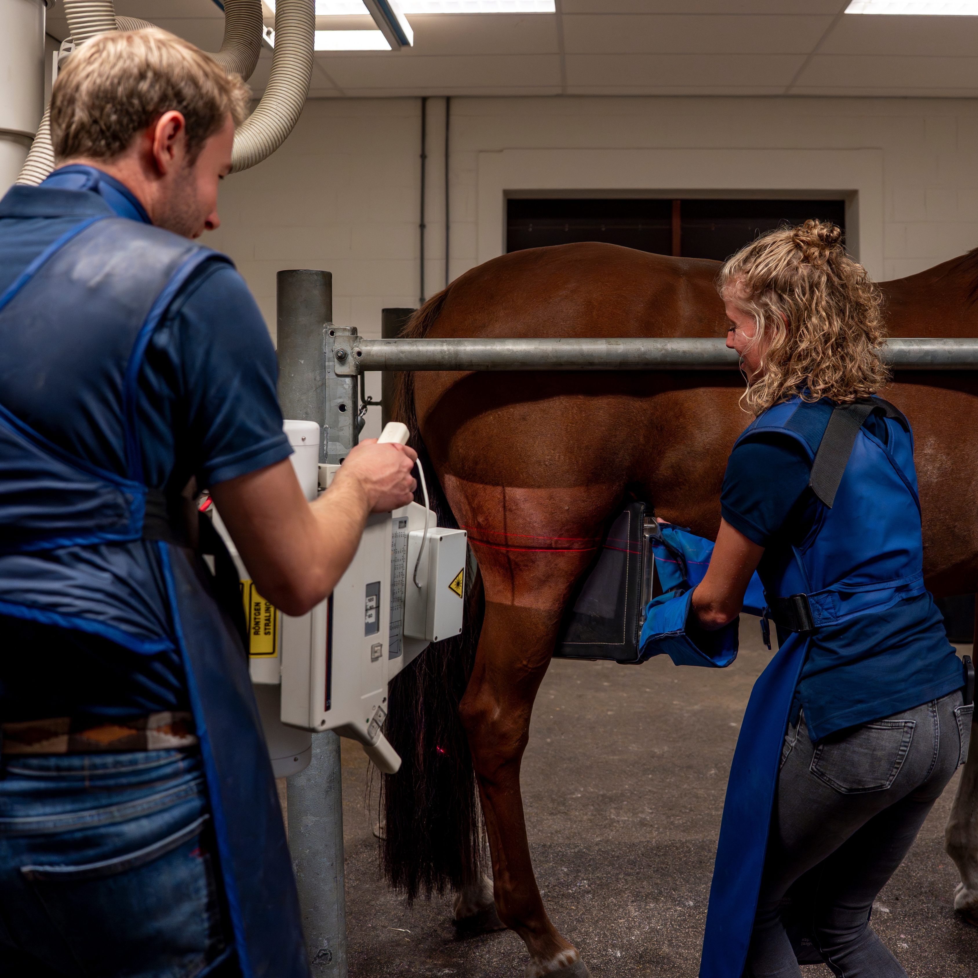 Op de paardenkliniek in Wapenveld wordt röntgenonderzoek dagelijks ingezet. Het is een van de meest gebruikte beeldvormende technieken in de paardengeneeskunde. Met digitale röntgen brengen we de botstructuren van het paard helder en nauwkeurig in beeld. Deze methode is bijzonder waardevol bij het onderzoeken van kreupelheid, het beoordelen van gewrichten en hoeven, en bij (aan- en verkoop)keuringen. Omdat de beelden direct beschikbaar zijn, kunnen we sneller een diagnose stellen en een passend behandelplan opstellen. Röntgenfoto’s zijn volledig pijnloos voor het paard. Afhankelijk van het onderzoeksgebied maken we de opnames terwijl het paard staat, eventueel onder licht sedatie. Zo kunnen we efficiënt en veilig werken, zonder onnodige belasting voor het dier.